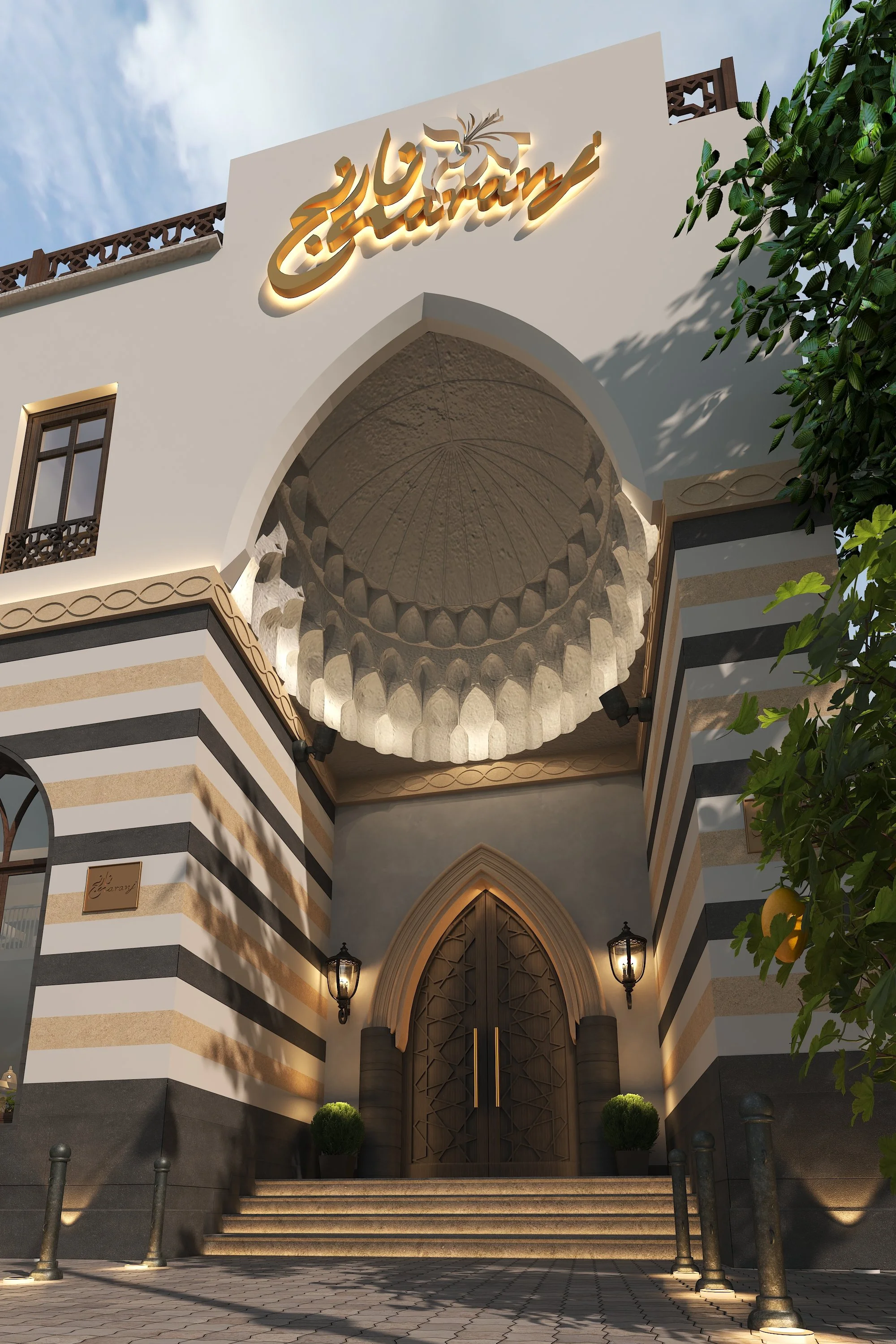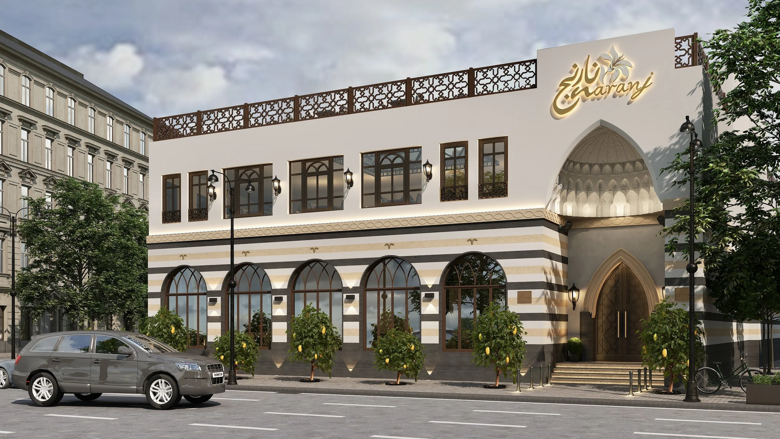 Naranj Restaurant, situated in Al-Basra, Iraq, is undergoing a transformative journey that seamlessly merges tradition with modernity. Our architectural renewal studies prioritize preserving the timeless beauty of Damascene architecture while infusing innovative design elements to elevate the space. Iconic arches, intricate carvings, and traditional building materials are meticulously restored, ensuring the spirit of the region's heritage endures throughout the exterior façade and interior spaces.