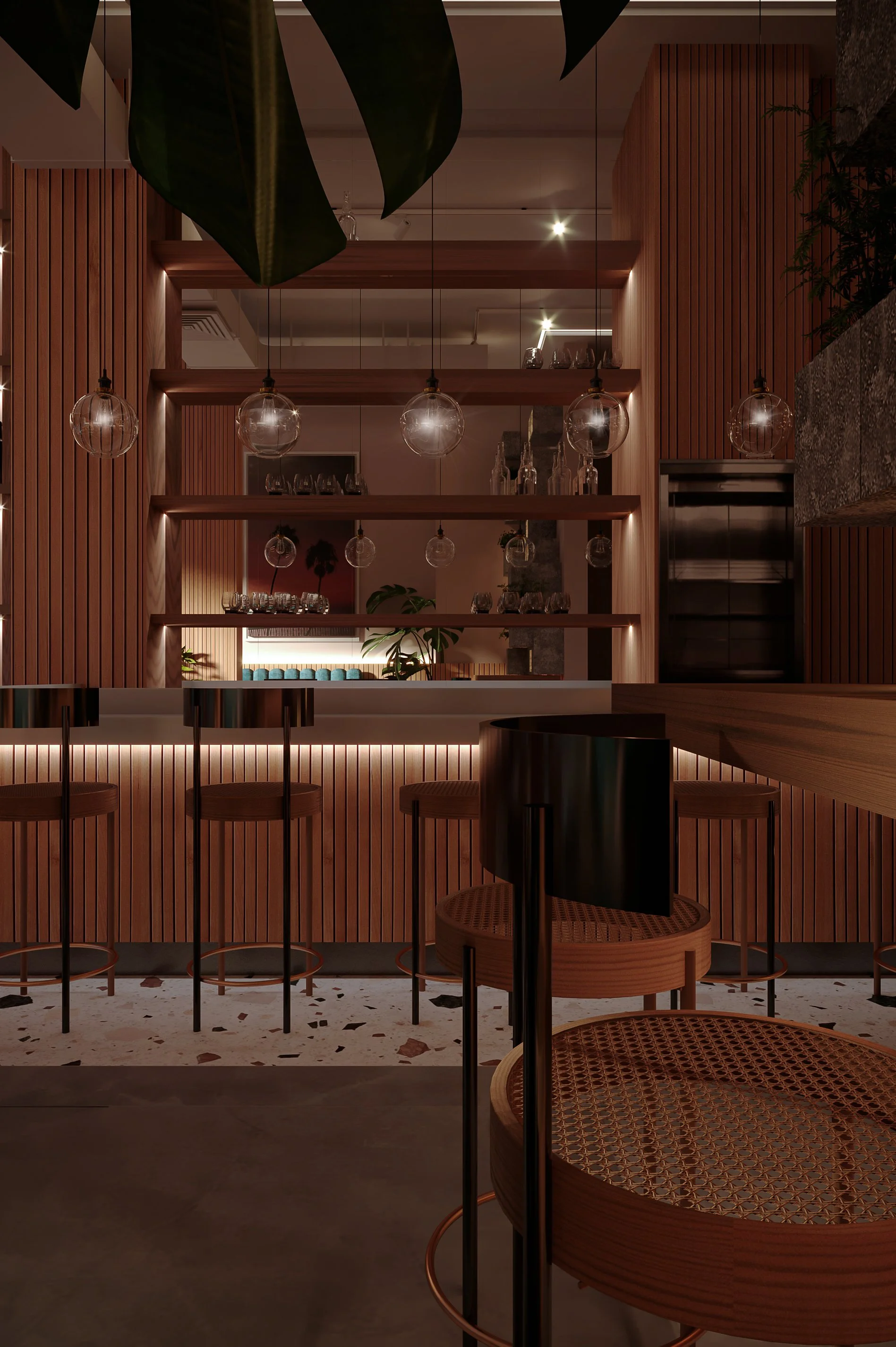 Our design philosophy at Bistro Bar also embraces minimalism, with clean lines and uncluttered spaces contributing to a sense of modern sophistication. A warm color palette, consisting of earthy tones and rich hues, further enhances the inviting ambiance of the space.